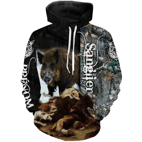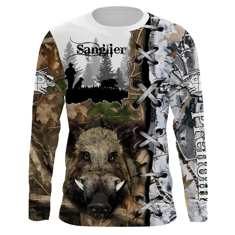 Prix habituel De 29,90 €Prix unitaire /IndisponibleT-shirt Chasse Aux Sangliers, Cadeau Personnalisé Chasseurs - CT29082220