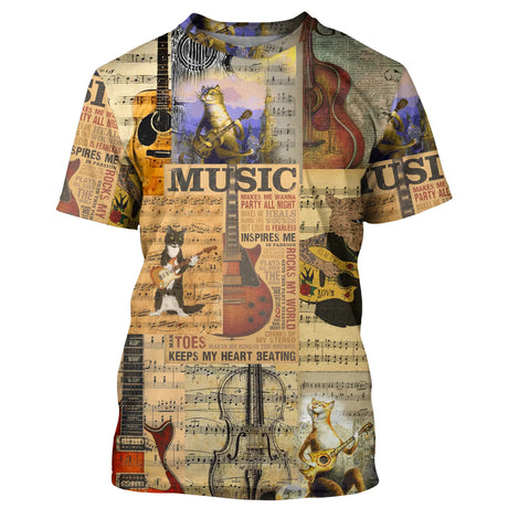 T-shirt Chat Jouer De La Guitare, Chat Musicien - CT26122209