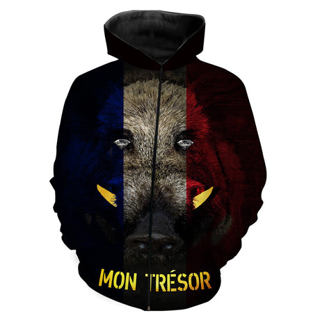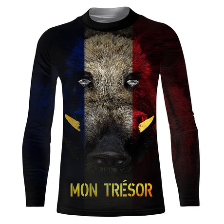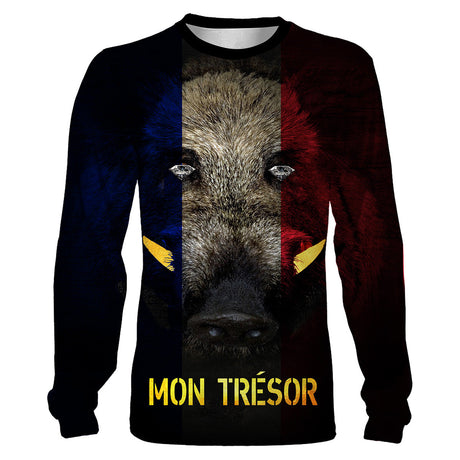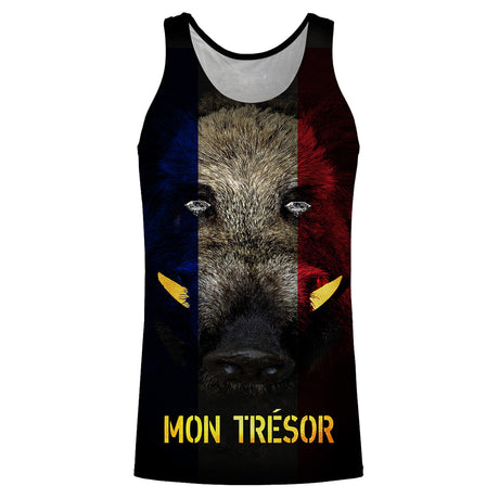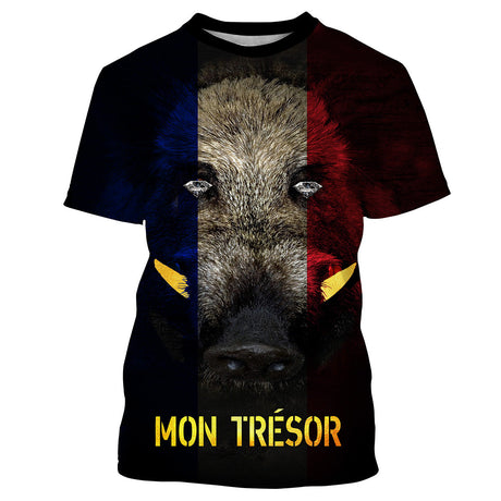 Chasse Du Sanglier, Tête De Sanglier, T Shirt Humour Chasseur, Drapeau France - VECHSA002