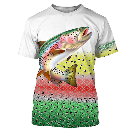 Anti-UV Shirt Personnalisé Pêche À La Truite, Vert Noir Blanc, Cadeau Idéal Pêcheur - CT25072217