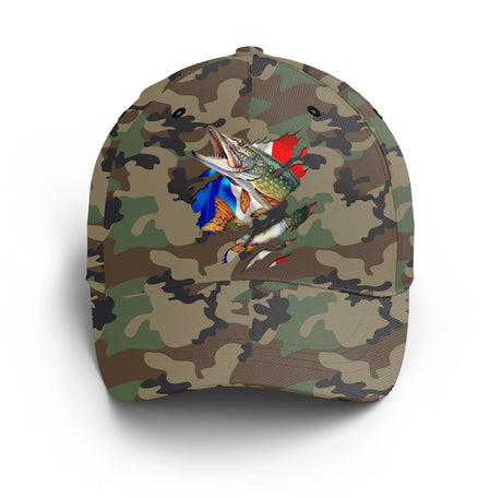 Casquette Camouflage Pêcheur, Pêche du Brochet, Cadeau Original Fans de Pêche - CT23072215