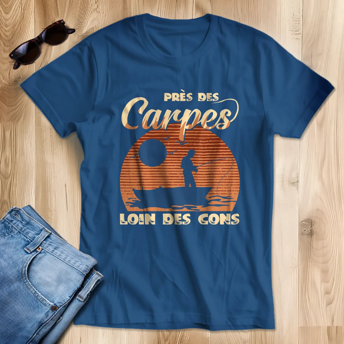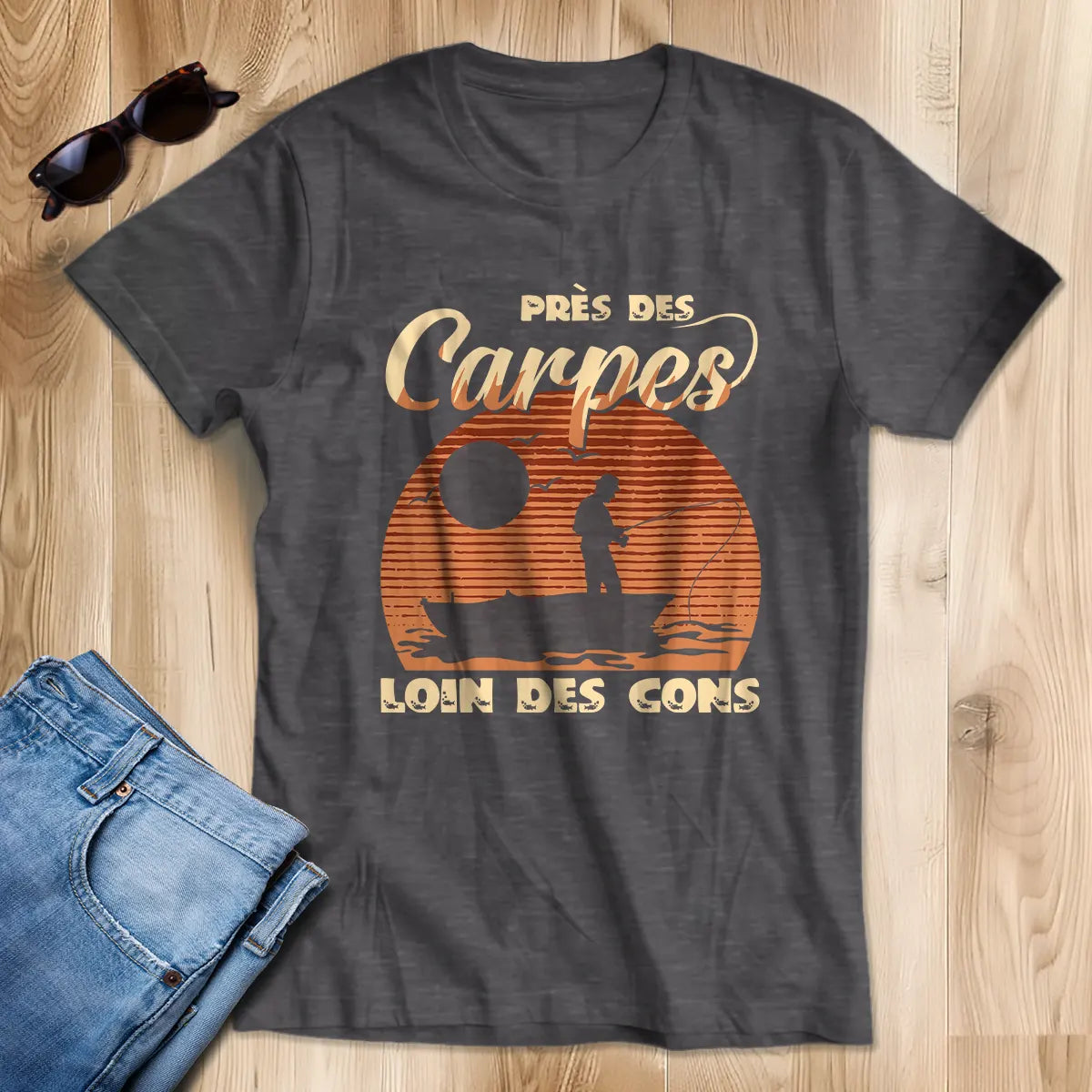 Cadeau Humour Pêcheur Homme, Pêche de la Carpe, T-shirt Pêcheur Drôle, Près des Carpes Loin des Cons