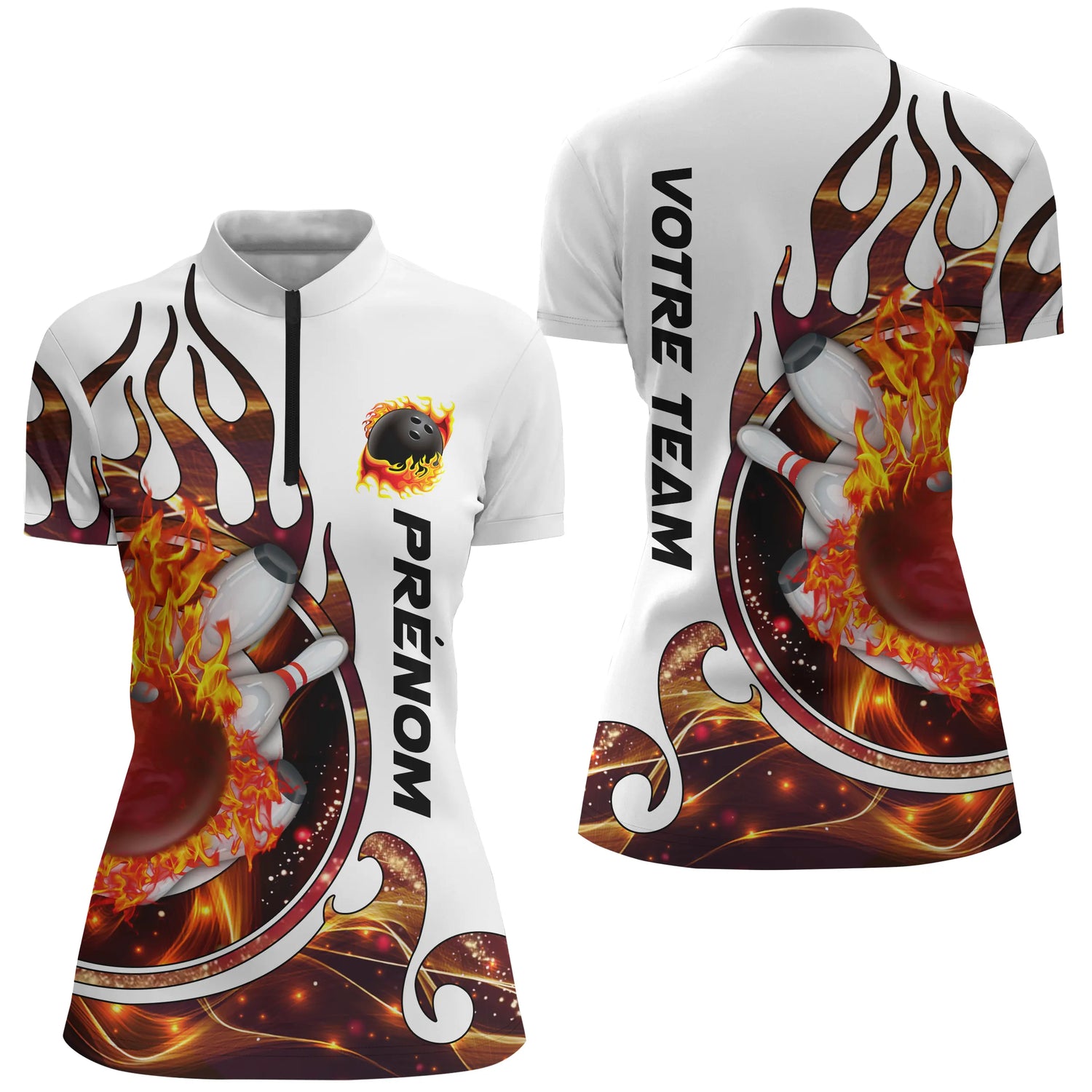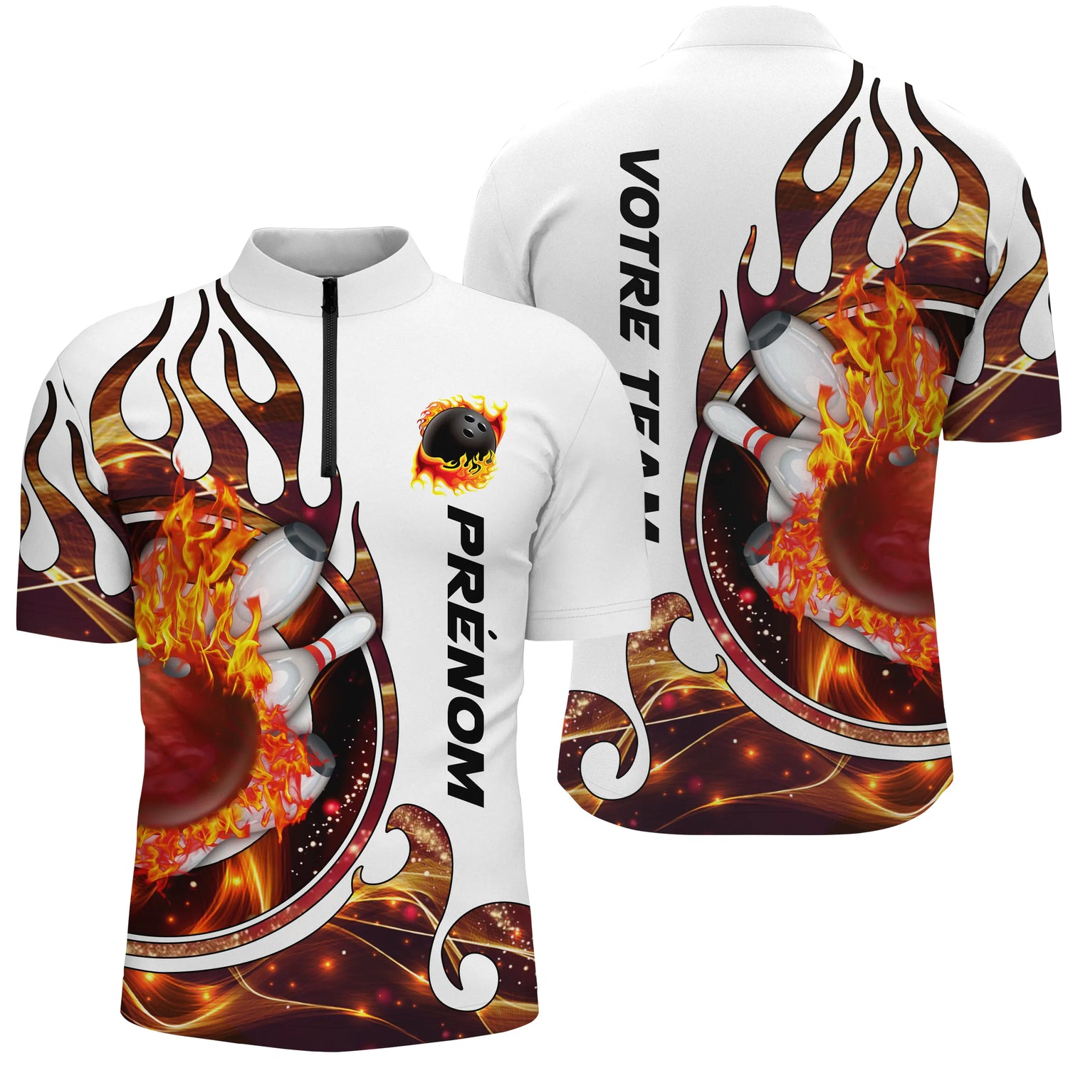 Maillot de Bowling Personnalisé Femme & Homme – Design Flamme | Prénom & Équipe - A05092412