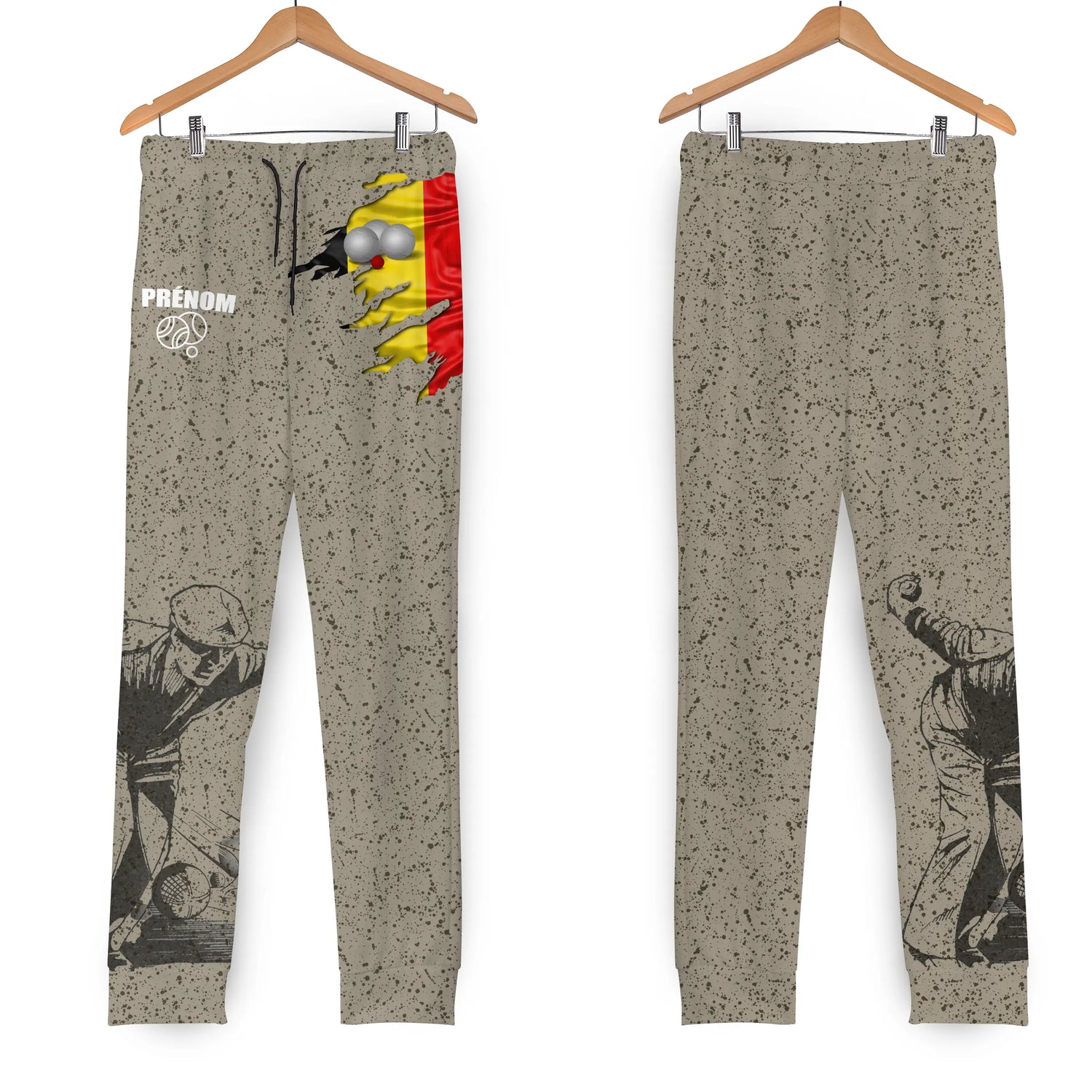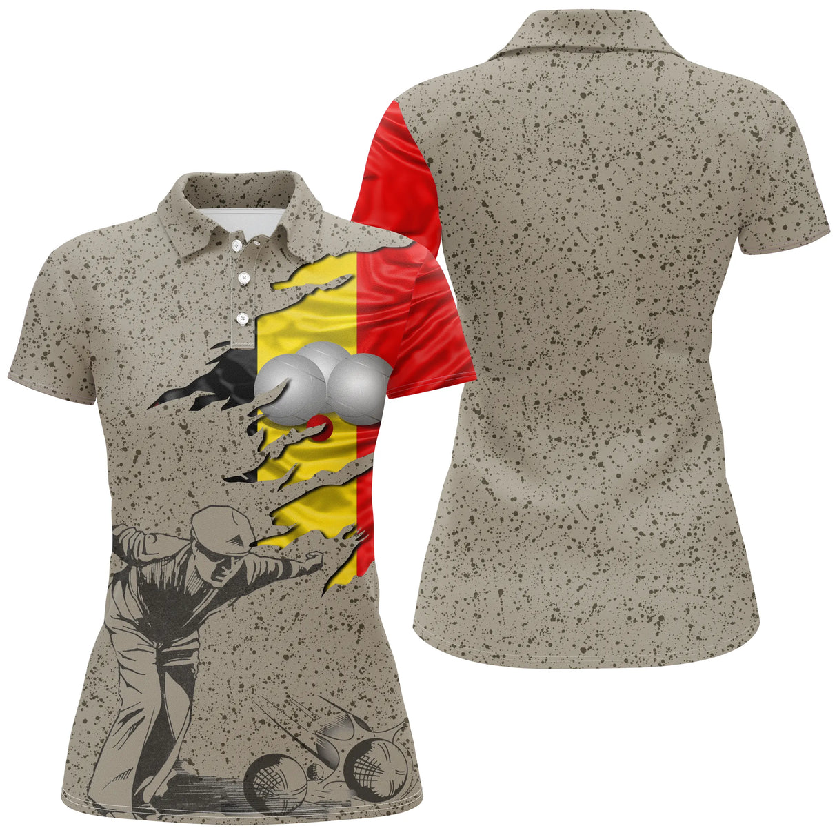 🎯 Design unique : Motif effet béton moucheté, visuel joueur de pétanque en pleine action, et fond tricolore belge déchiré façon dynamique. Un look audacieux et reconnaissable sur tous les terrains.
